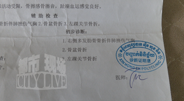 “七八个打手拎着橡胶棍围上来,拳打脚踢,打了差不多十来分钟。”据医院诊断书显示,邱先生右侧多发肋骨骨折伴肺挫伤气胸、骨盆骨折、左踝关节骨折。
