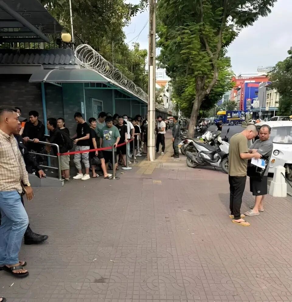 金边中国大使馆前的长队成为这场“跑路潮”最直观的写照。