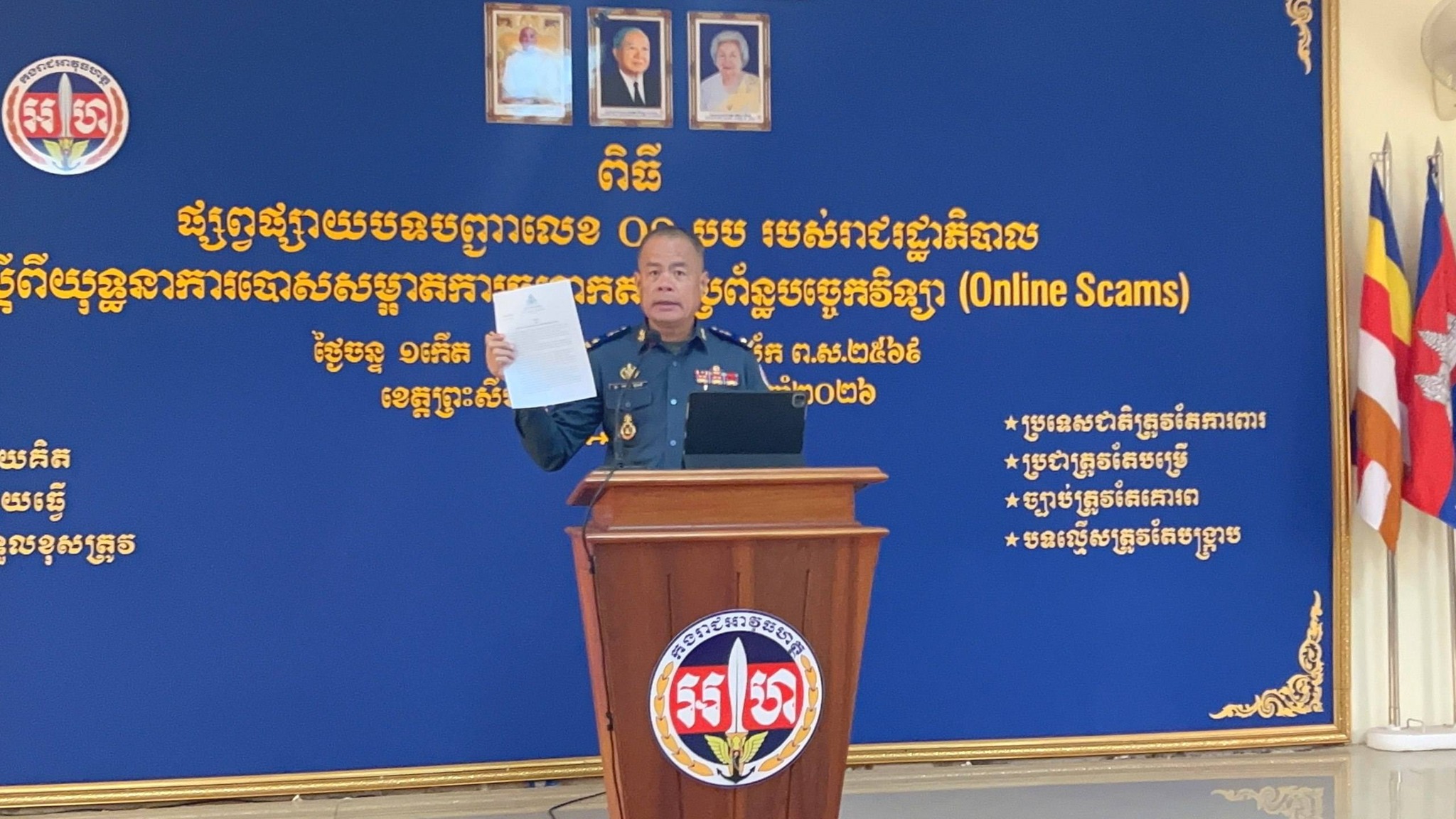 柬单网报道,1月19日下午,西港宪兵司令兴文弟主持召开专题会议,就进一步开展电信网络诈骗专项整治行动进行研究部署。会议强调,要全面贯彻落实上级指示要求,依法严厉打击各类电信网络诈骗犯罪,切实维护社会治安秩序和人民群众财产安全。