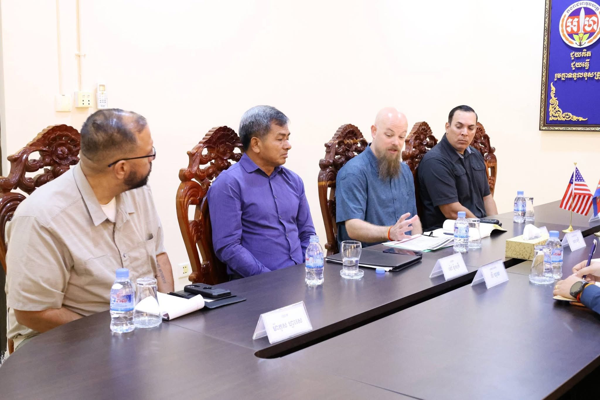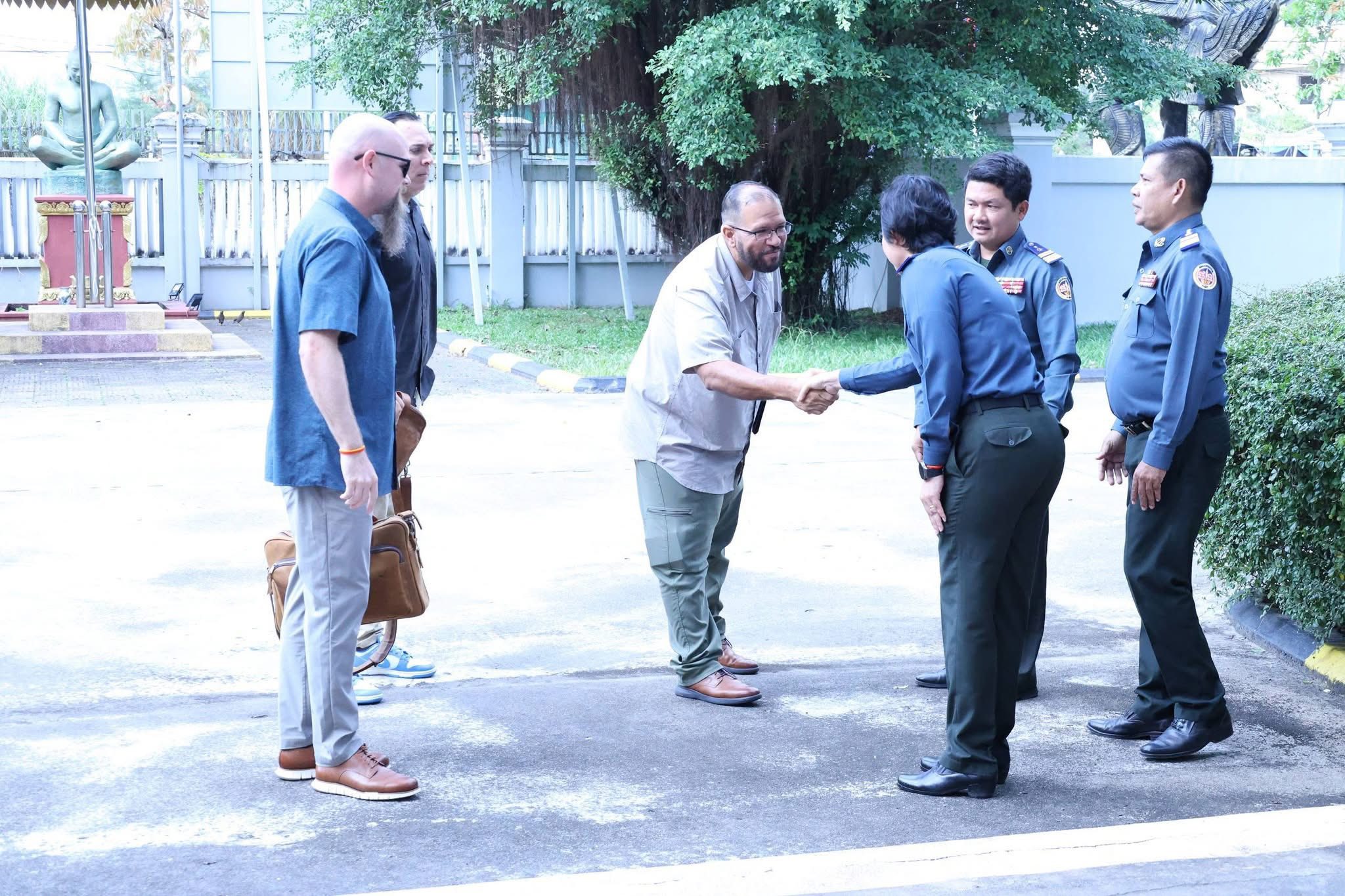 柬单网报道,1月21日上午9时,西港省宪兵副司令兼参谋长成武提代表西港省宪兵司令兴文迪,礼节性接待美国海军驻新加坡特别探员威廉·约翰逊(William Johnson)及工作团队。