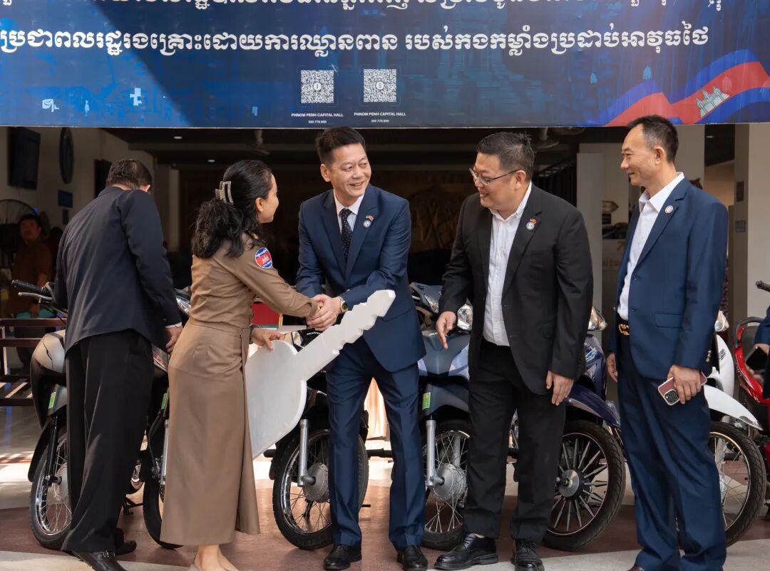 捐赠仪式现场,金边市副市长TEMA VICHEK对此次善举给予高度赞誉。他指出,这批捐赠的摩托车将有效提升边境地区的公务响应效率与公共服务保障水平,对改善当地民生福祉、维护区域秩序稳定具有重要的现实意义。