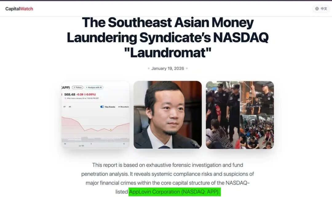 近日,美国做空机构CapitalWatch发布了一份针对纳斯达克上市公司AppLovin的深度调查报告。虽然报告的调查对象是美国科技巨头,但核心指控却指向太子集团及其实控人陈志。报告详细披露了AppLovin大股东与陈志在资本运作与技术层面的深度关联,指出太子集团旗下互联网公司疑充当了跨国洗钱链条中的关键一环。