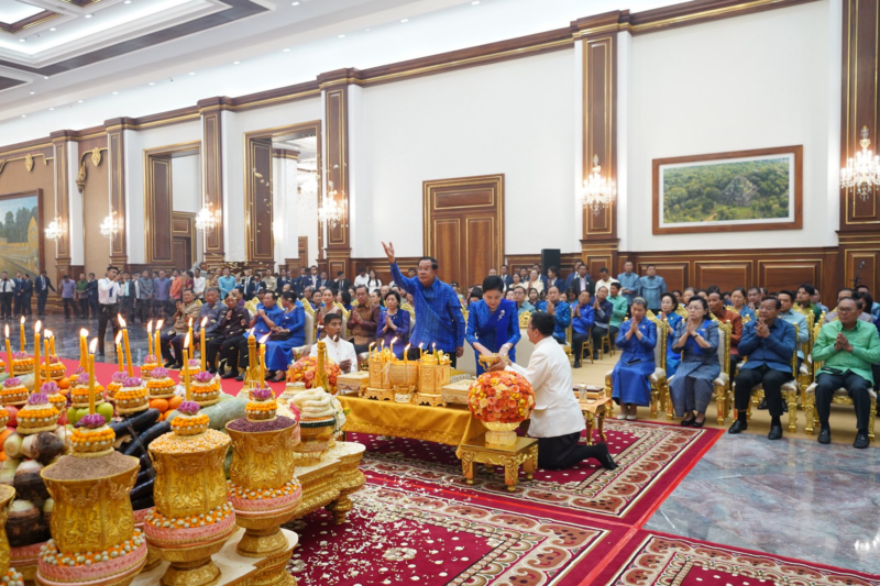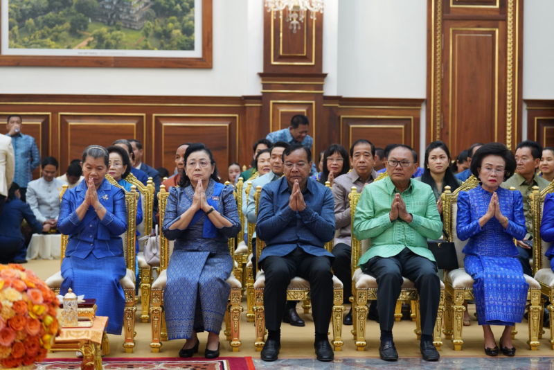 在仪式期间,洪森亲王与文拉妮亲王依照柬埔寨传统,进行了洒圣水、献香、供奉等祈福环节。据悉,该大楼将于后续由西哈莫尼国王主持正式落成启用。