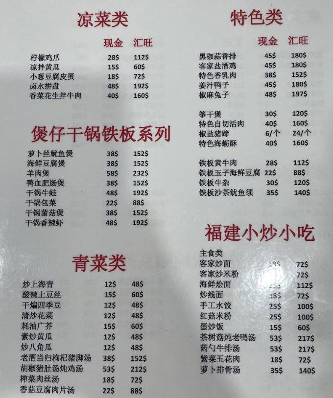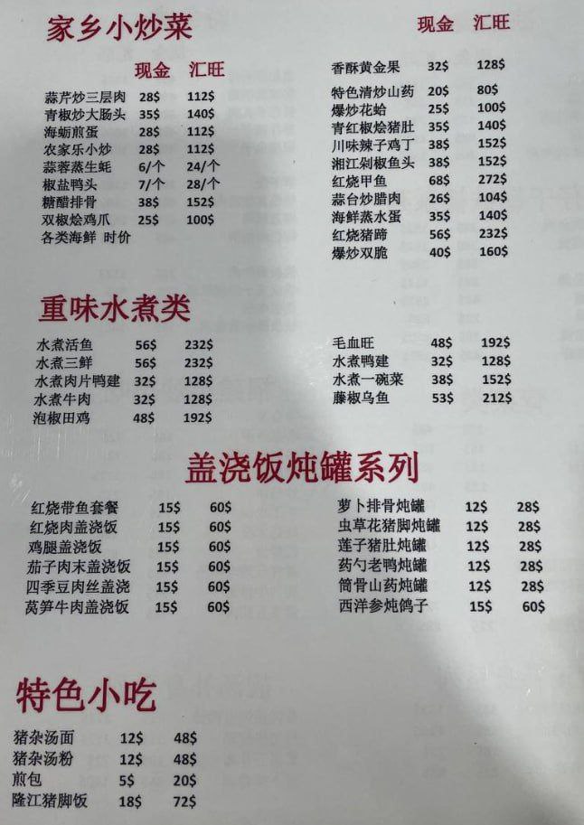 有网友爆料,一份疑似园区内部使用的菜单近日在华人圈流传,价格让人直呼离谱。菜单显示,红烧甲鱼标价68美元,若用汇旺支付高达272美元;水煮活鱼、水煮三鲜现金价56美元,汇旺需232美元;就连看似普通的毛血旺,汇旺价格也飙到192美元。