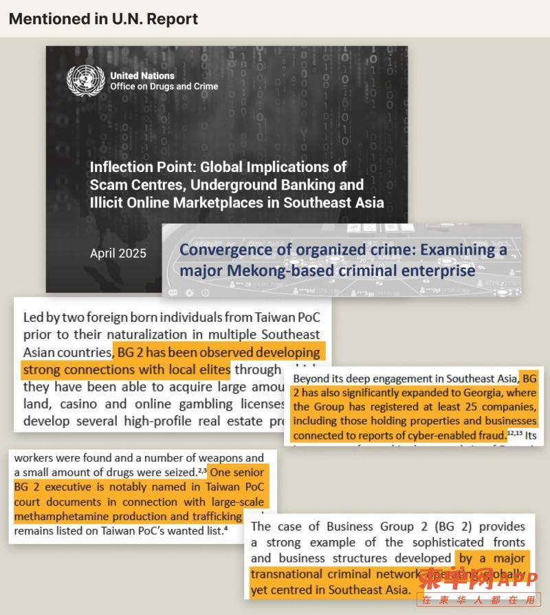 联合国2025年发布的一份报告披露,一个活跃于湄公河地区的“重大犯罪企业”长期从事线上诈骗、非法赌博及毒品贩运。多名参与报告编写的知情人士向有组织犯罪和贪腐举报项目(OCCRP)证实,该匿名企业正是总部位于柬埔寨的利鑫集团。