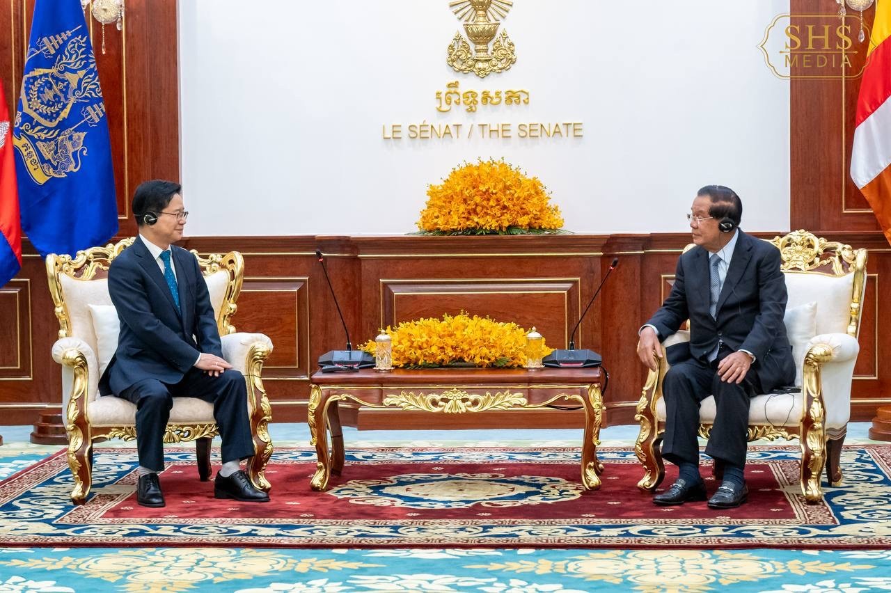 当日上午,洪森亲王在参议院大楼会见韩国驻柬埔寨新任大使金昌勇,双方围绕电信网络诈骗防控及跨国犯罪治理问题进行深入交流。