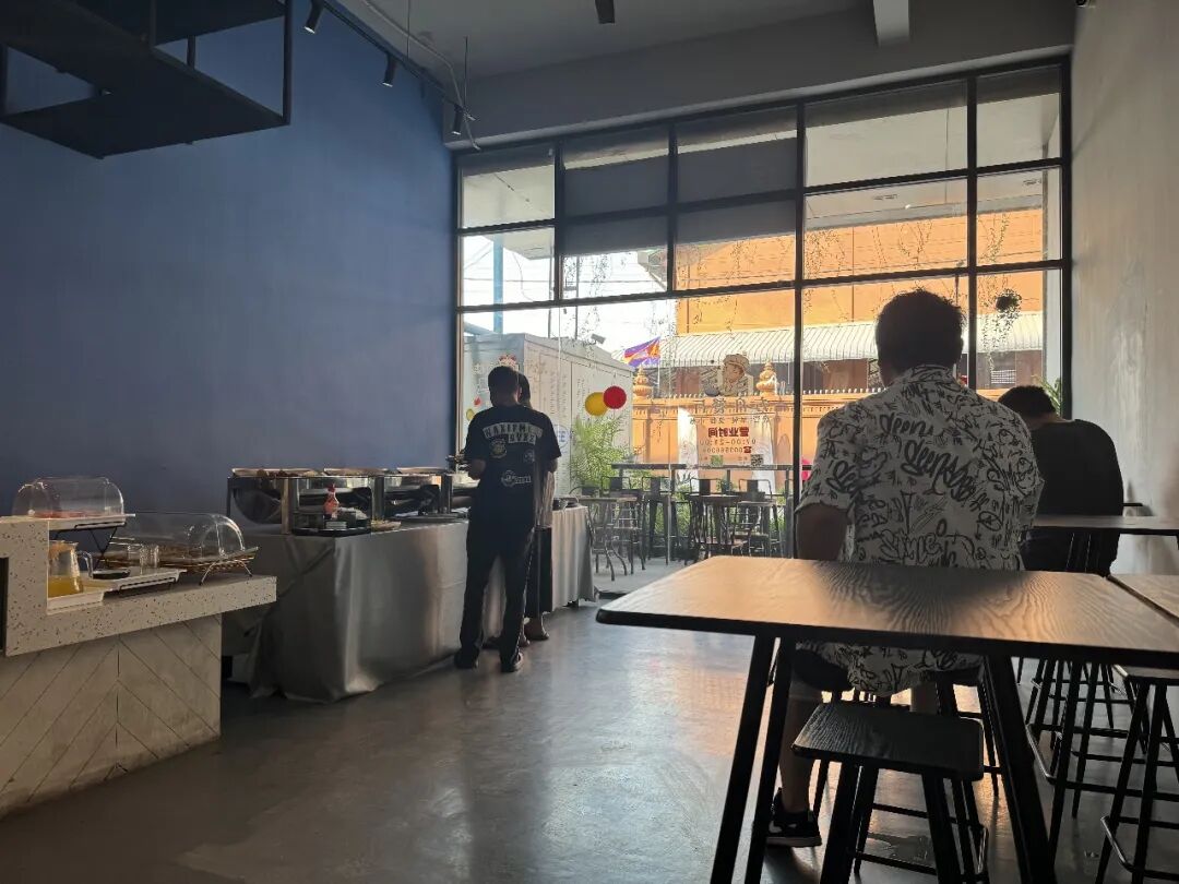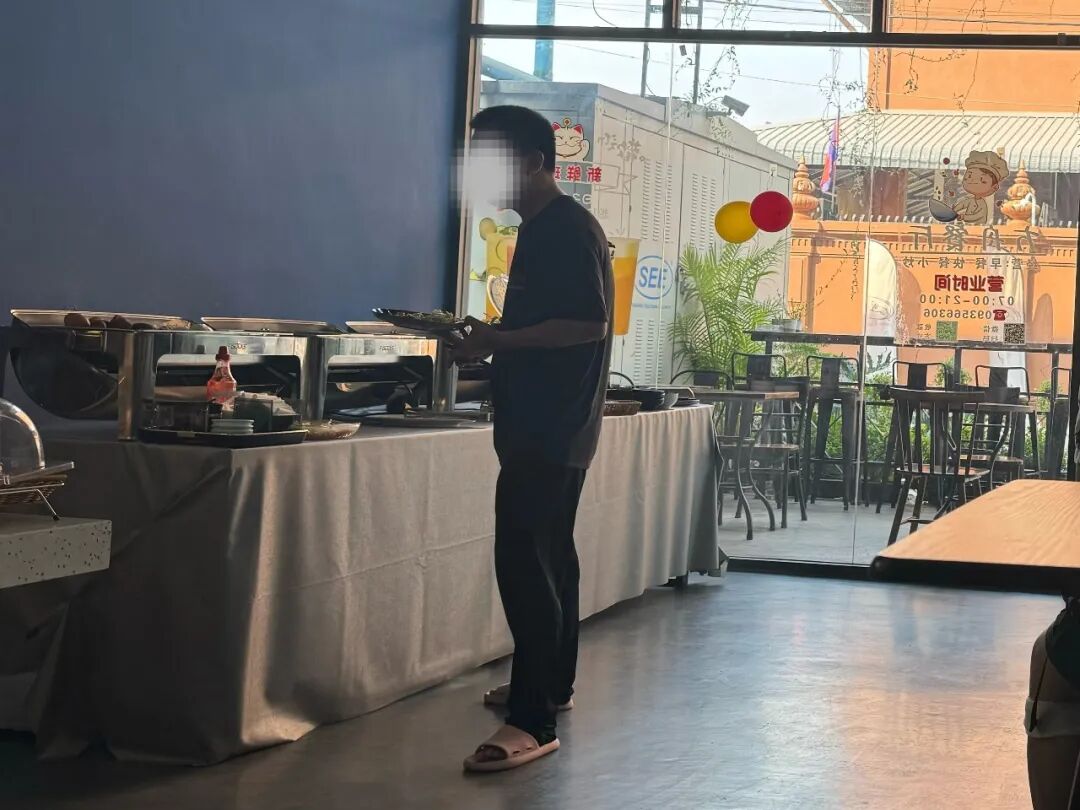 湖北叶大哥在方舟酒店饭堂(柬单网记者摄)