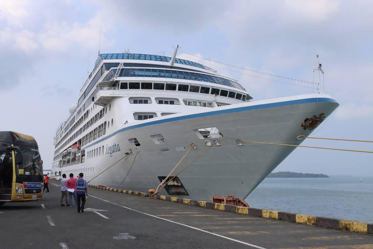 柬单网报道,1月31日上午,一艘名为“REGATTA”号的国际旅游邮轮停靠西港。该邮轮注册国为马绍尔群岛,此次共搭载来自多个国家和地区的游客641人,其中女性游客335人,入境柬埔寨进行为期一天的观光旅游。