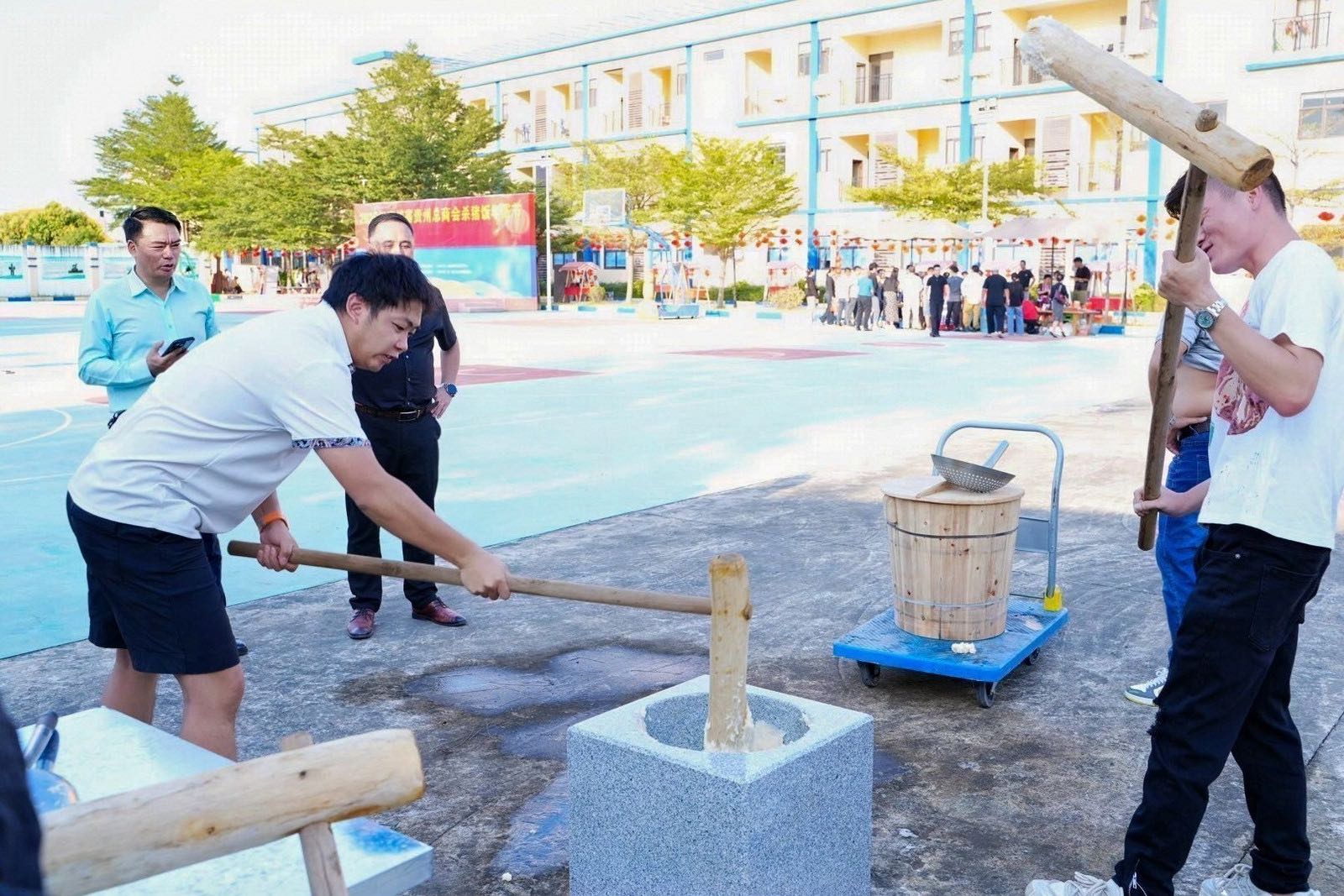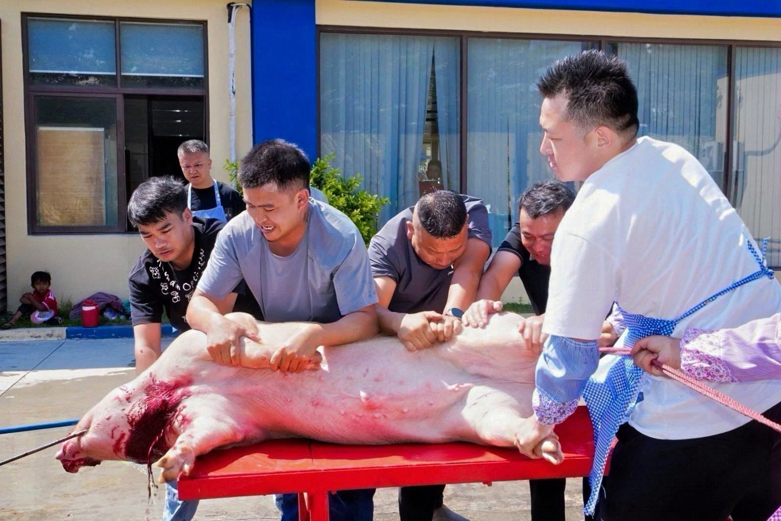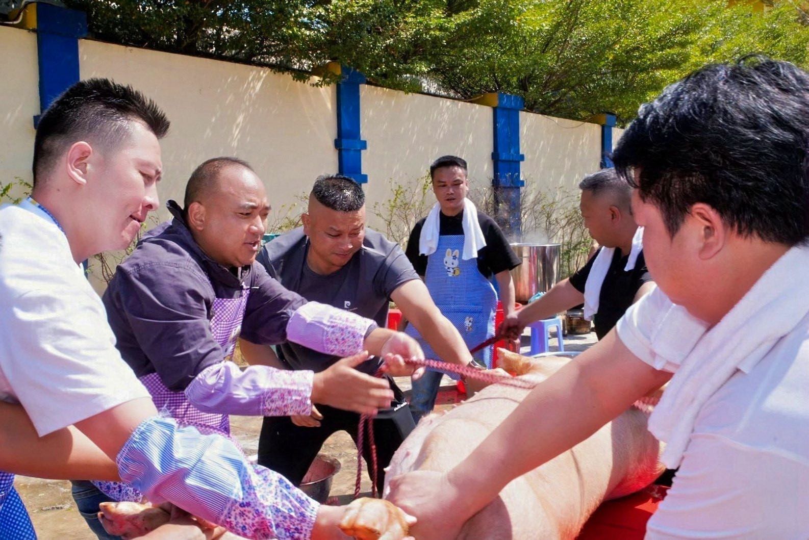 【高清大图】贵州人在柬埔寨过年:杀年猪、打糍粑、领猪头