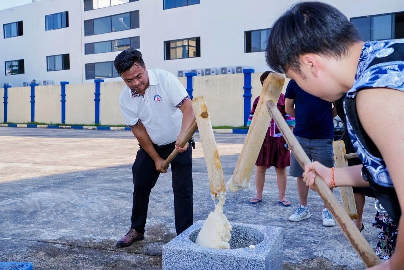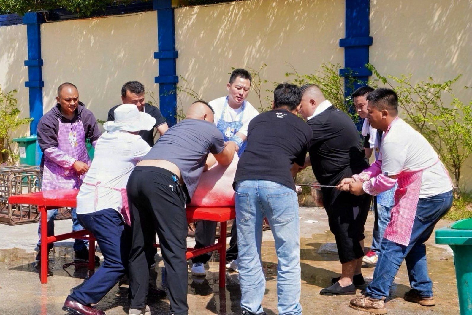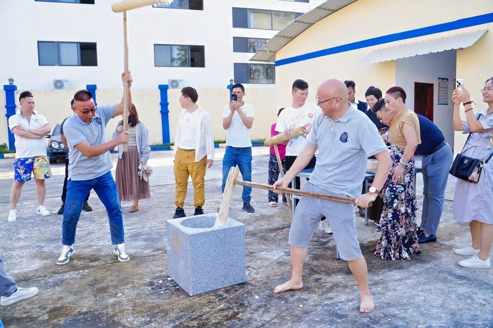 【高清大图】贵州人在柬埔寨过年:杀年猪、打糍粑、领猪头