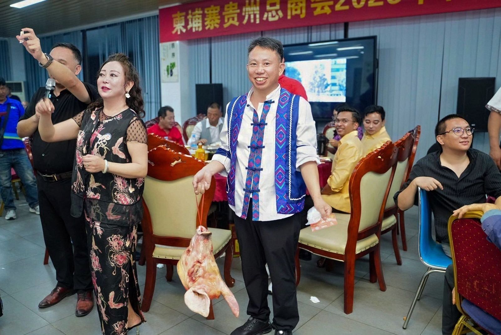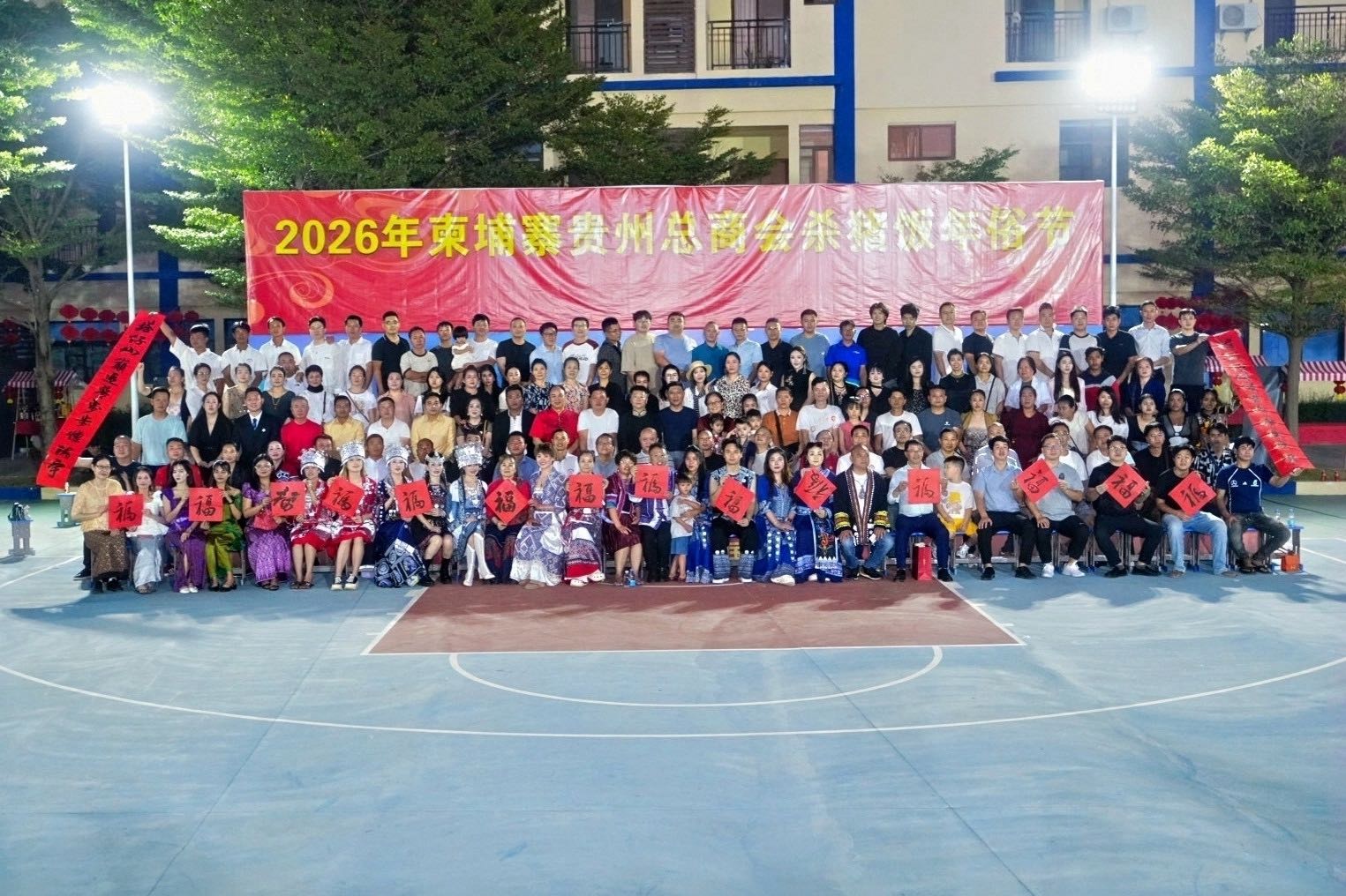2月1日,由柬埔寨贵州总商会组织,近三百贵州人在柬埔寨过大年,大家杀年猪、打糍粑、跳篝火晚会,领猪头和猪肉大奖。大家玩起了各种童年游戏,非常精彩啊。
