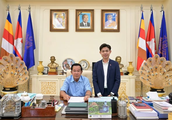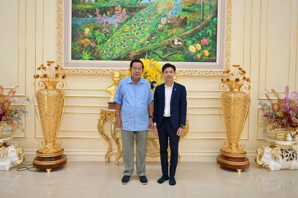 柬单网报道,2月5日,柬埔寨参议院主席洪森亲王会见居住在日本的柬埔寨青年陈速提。