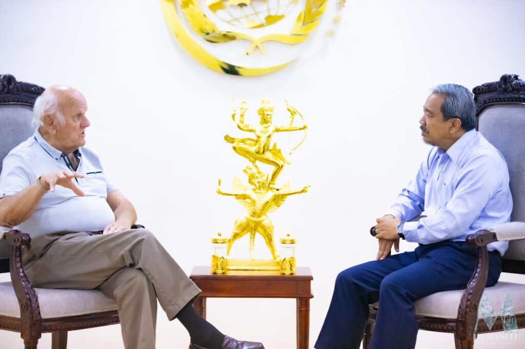 会谈中,高列米对 Coughenour 法官一行的到访表示欢迎,并就柬泰边界争端的历史背景作了说明。他指出,柬埔寨始终尊重并遵循1904年和1907年《法暹条约》确立的边界法律框架,该系列条约作为国际社会承认的重要法律文件,是界定柬泰边界的合法依据。他表示,泰国部分政治人物及极端团体仍使用未经国际承认的单方面绘制地图,相关做法偏离国际法基本原则。