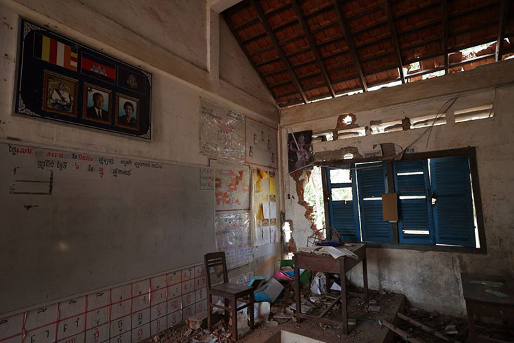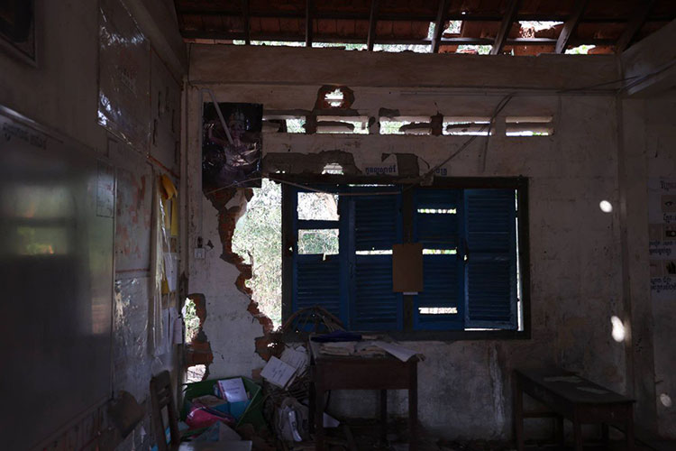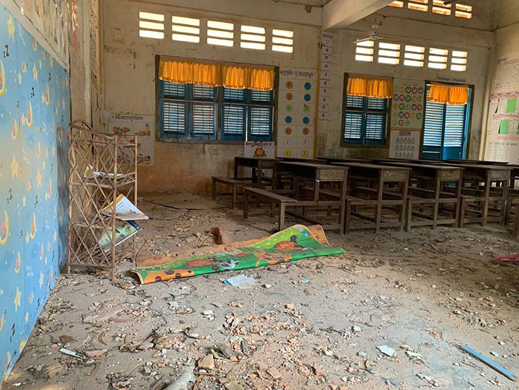 2025年7月27日,泰军向Tamone Senchey小学投掷炸弹并多次发射炮弹。停火后,校方在合作组织与地方当局的支持下,通过搭建临时帐篷勉强维持教学。12月,泰军发动第二次侵略,再次炮击该区域。此轮袭击不仅彻底夷平了原有的学校建筑,更将其赖以生存的临时教学帐篷付之一炬。