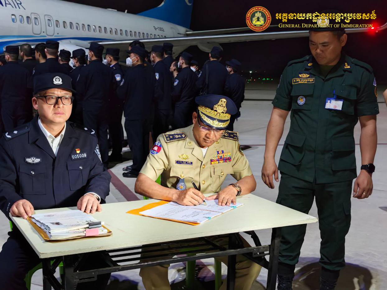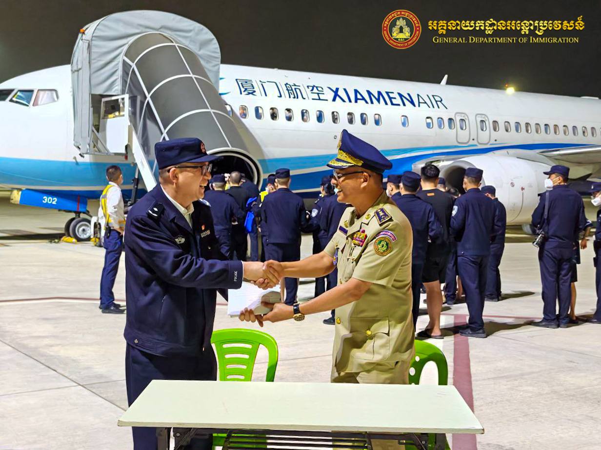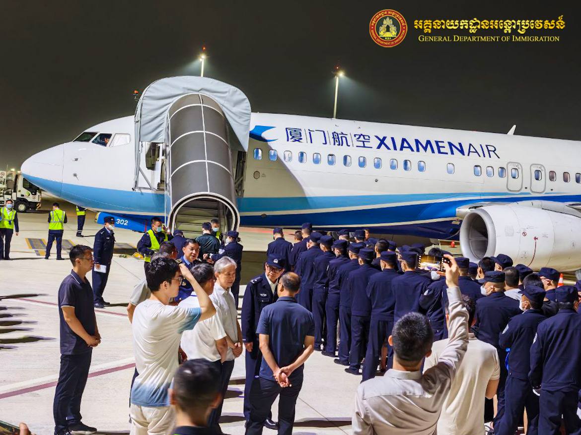 中国派包机从柬埔寨押解110名电诈嫌犯回国