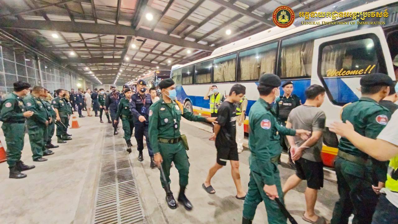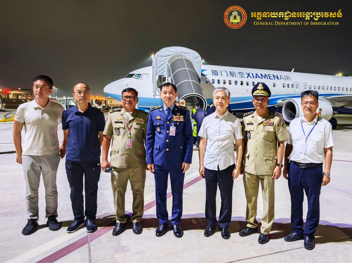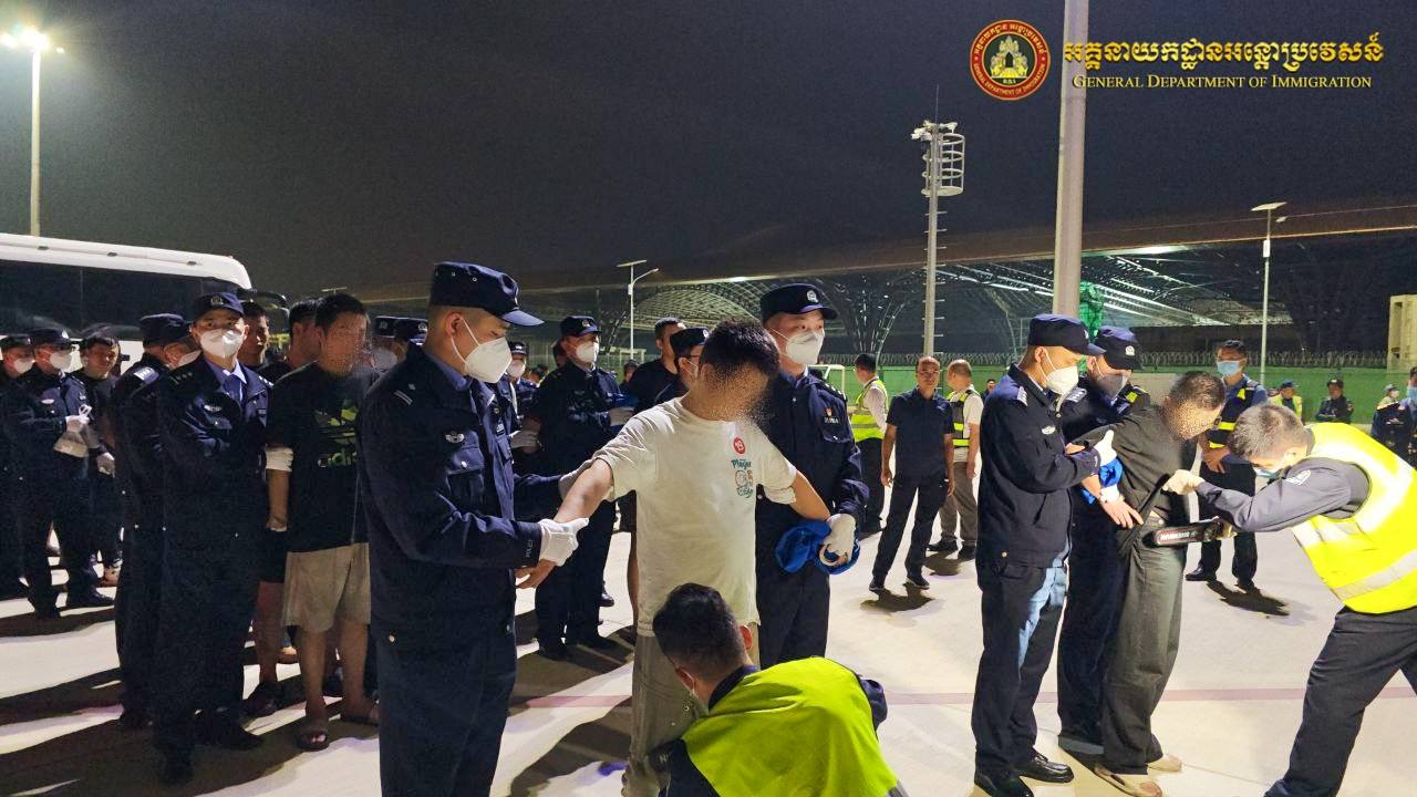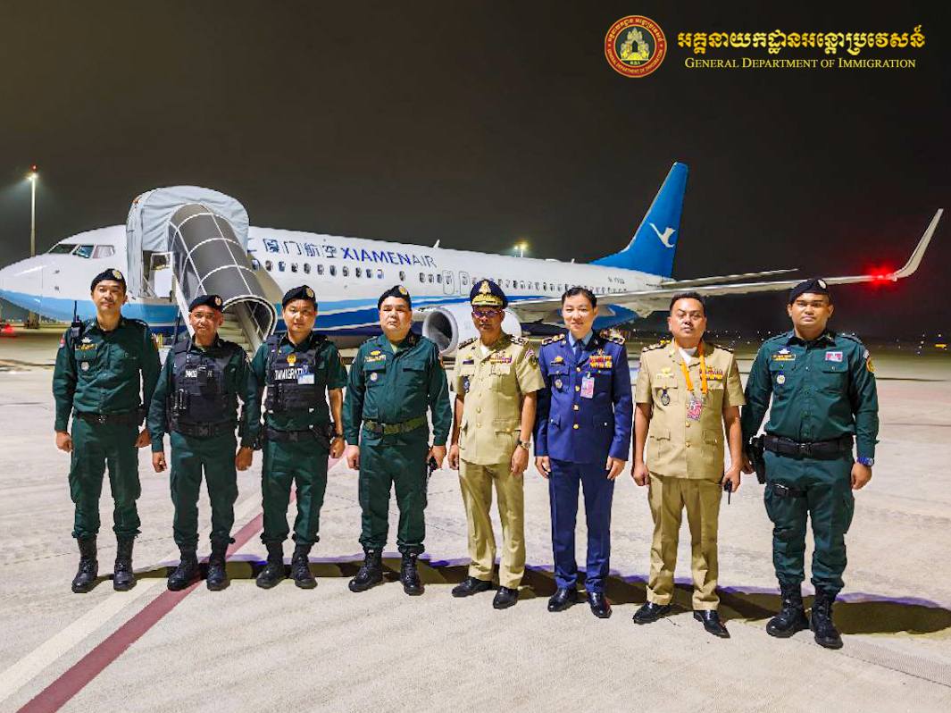 中国派包机从柬埔寨押解110名电诈嫌犯回国