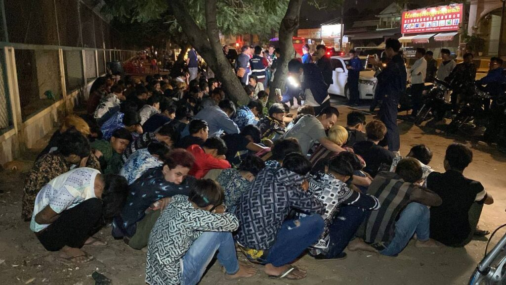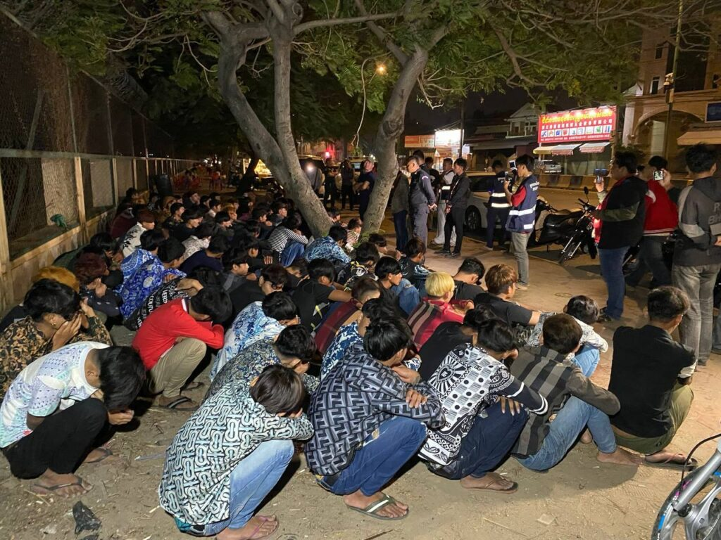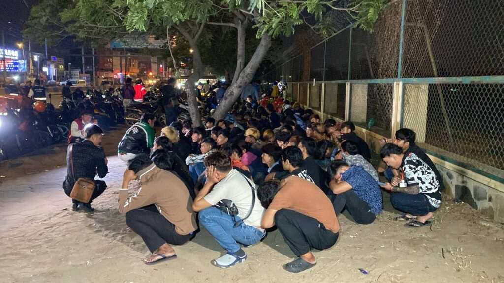 柬单网报道,2026年2月8日凌晨2时,金边菩森芷区警方在俄罗斯大道展开执法行动,拘留了近100名涉嫌扰乱公共秩序的摩托车团伙成员,并对其进行教育。