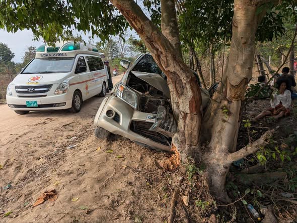 柬单网报道,2月8日下午,实居省奥拉县发生一起交通事故,一辆丰田皮卡在行驶过程中失控撞上路边树木,造成包括司机在内的14人受伤,其中司机伤势较为严重。