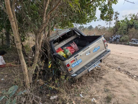 据当地警方通报,肇事司机为一名70岁的柬埔寨籍男子。事发时,该皮卡沿乡村泥土路由北向南行驶,行至事故路段时车辆突然失控,随后撞上路边树木。