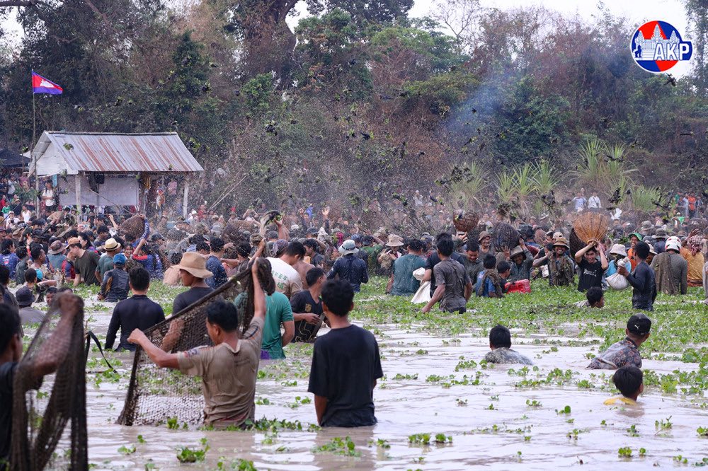柬单网报道,2月8日清晨,暹粒省数千名当地民众手持传统渔具,齐聚湖中,参加一年一度的传统捕鱼仪式,场面蔚为壮观。