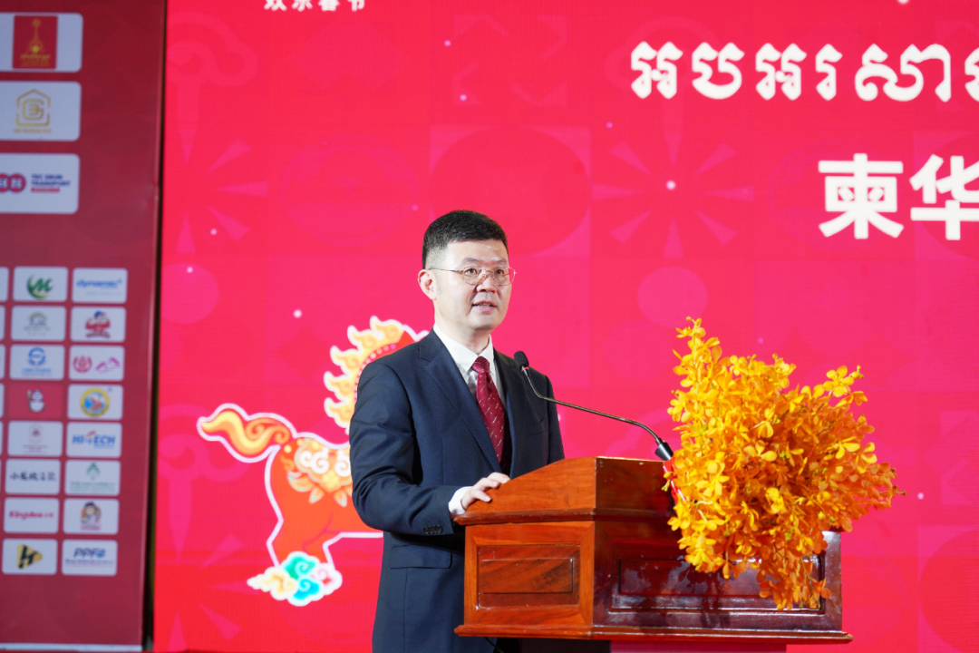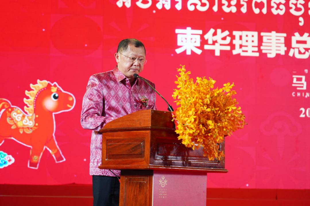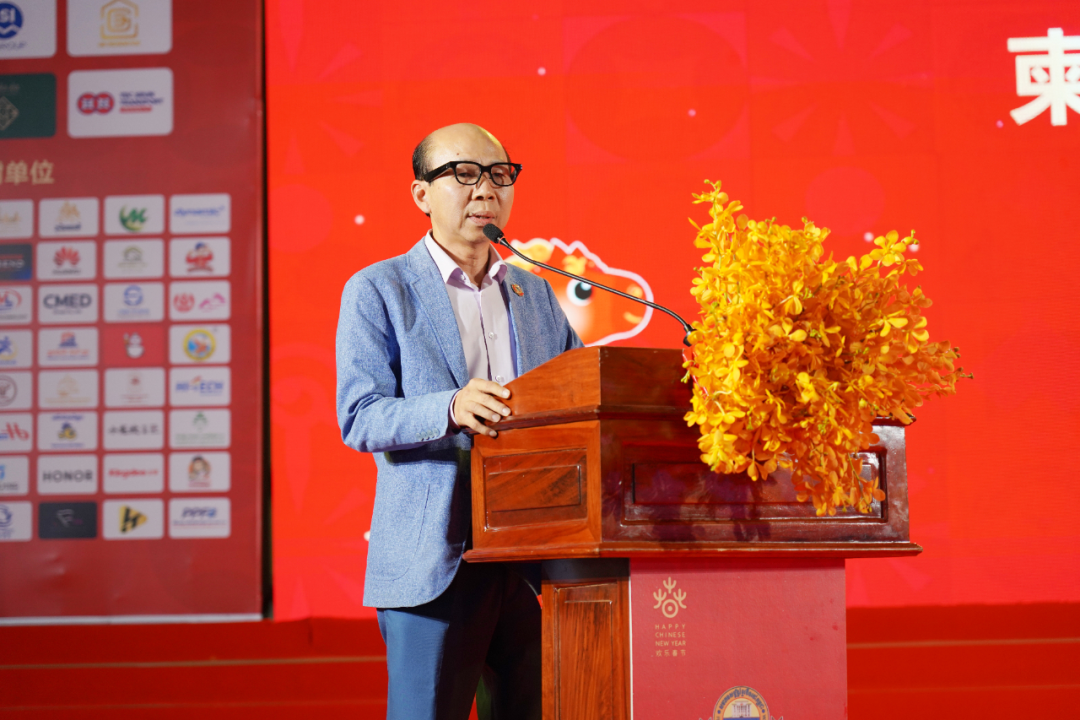 中国驻柬埔寨大使馆姜楠公使代表使馆向广大旅柬侨胞致以节日的问候。姜楠公使指出,春节已正式列入联合国假日,成为连接世界的文化纽带。他高度赞扬柬华理事总会在团结侨社、兴办教育及架设中柬友谊桥梁方面的卓越表现。