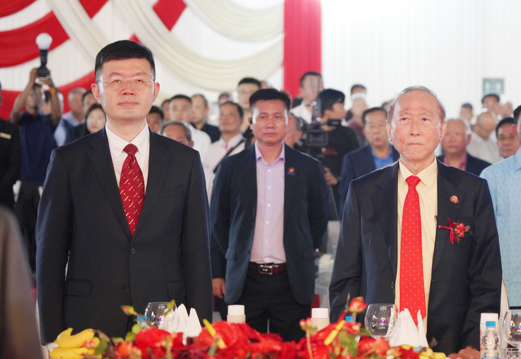 中国驻柬大使馆姜楠公使、柬华理事总会会长方侨生大公爵、柬华理事总会最高名誉会长陈玉叶大公爵、监事长郑源来公爵等侨界领袖出席活动。参加晚会的还有多位常务副会长、青年团团长杨宗霖勋爵及青年团成员、商会代表等,现场气氛隆重而热烈。