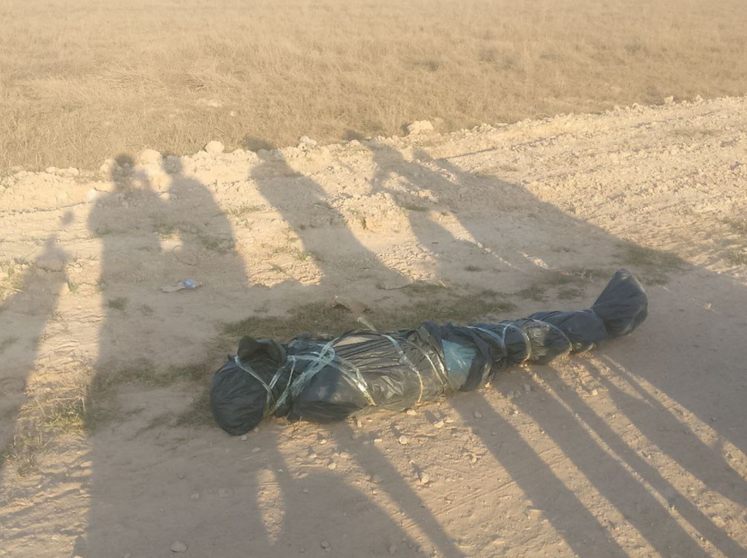 当地民众在巴域一条小路旁发现一具被黑色塑料袋包裹的遗体