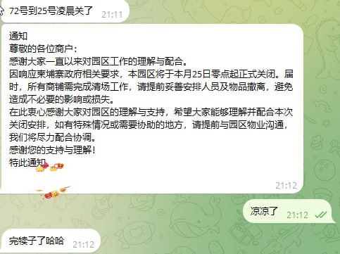 网传72号园区将于2月25日零点起正式关闭