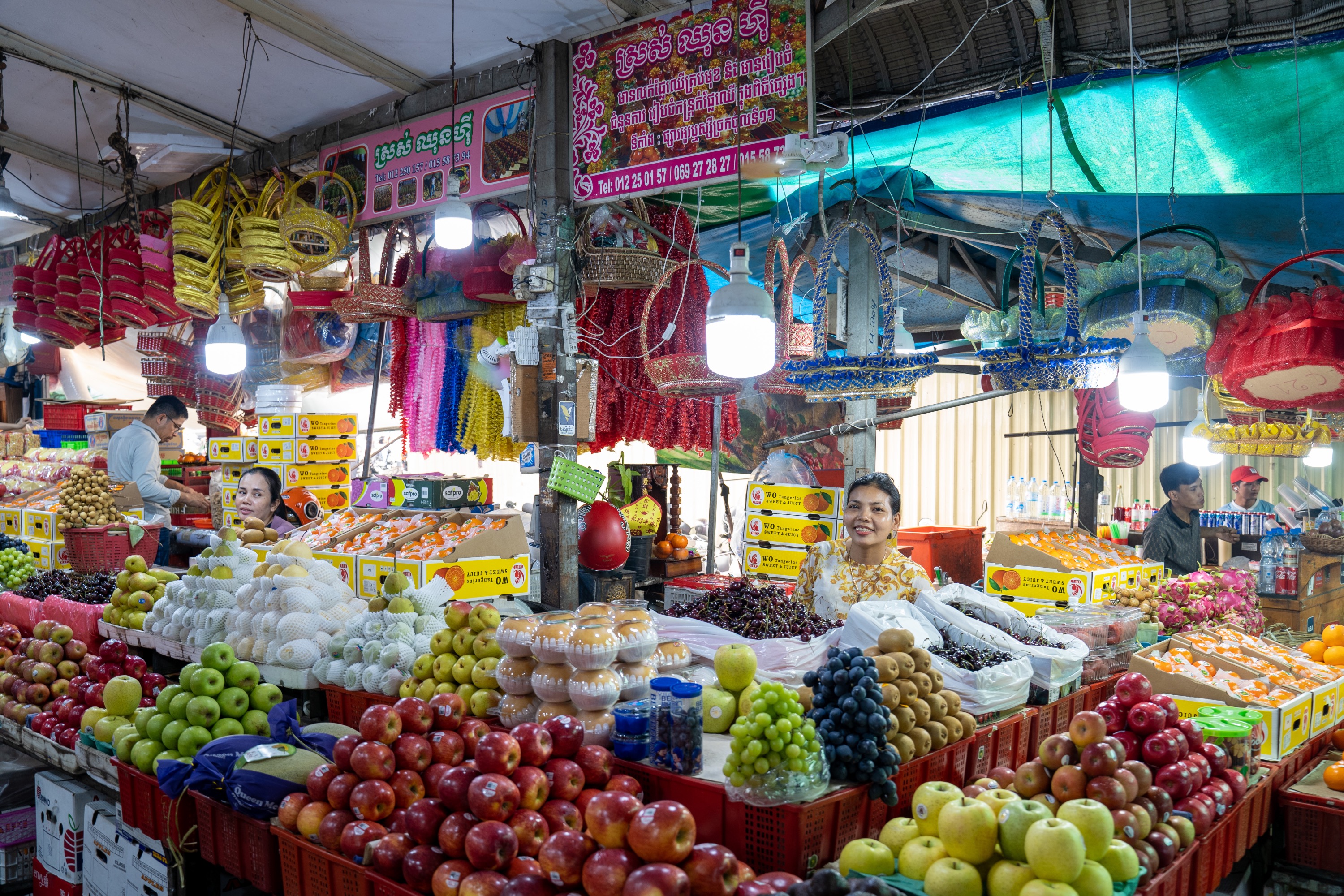 春节年味浓,金边华人在乌亚西市场置办年货。(来源柬单网图片库)
