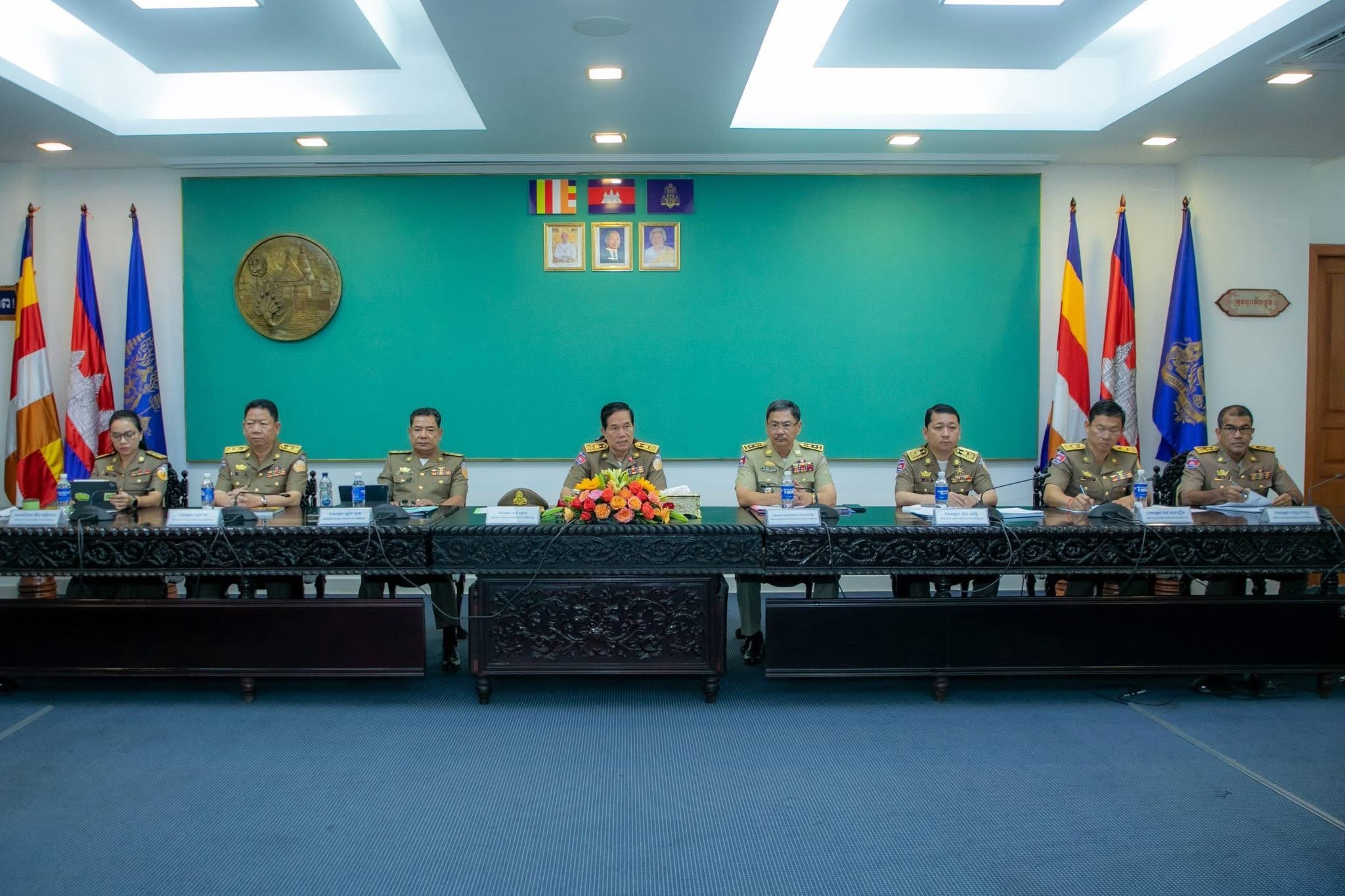 金边市长坤盛与一众执法官员出席会议,确保电诈的清除工作有序推进