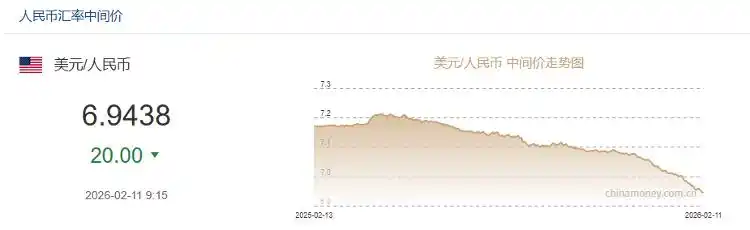 2025年11月中旬以来,人民币开启强势升值之路,连续突破7.10、7.05等多个重要关口,2025年底,在岸、离岸人民币对美元汇率双双“破7”,今年1月,人民币对美元汇率中间价悄然“破7”。