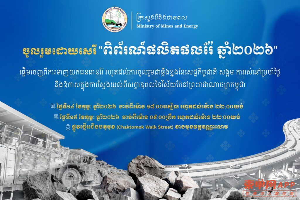 值得一提的是,首届矿产品展览会于2026年2月14日至15日在金边四臂湾步行街旁乌那隆寺前举行,为期两天,共有21个部委、机构、协会及矿业企业参展,设置31个展位。