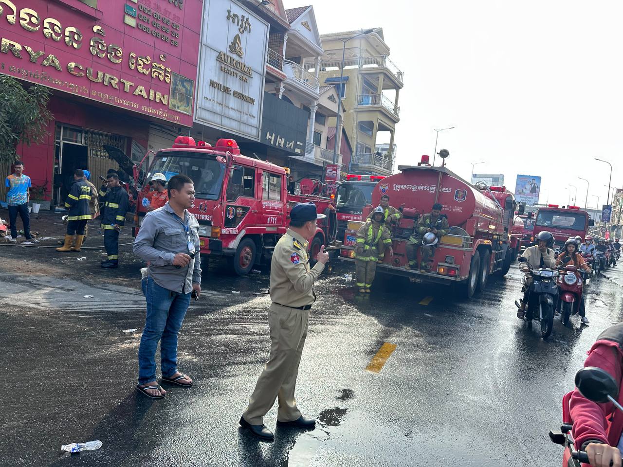 警方通报,火灾发生于2月13日凌晨3时20分,地点位于金边市堆谷区万沙朗分区一带,涉及塑料制品、纸箱、家具、汽车维修等多类仓库及周边住宅商铺,部分建筑受损严重。
