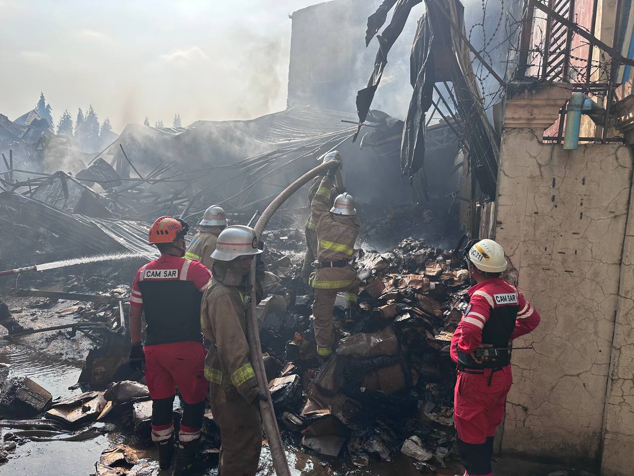 柬单网报道,近日,金边市宋仁芷立交桥附近的仓库及住宅区突发严重火灾。金边市消防局迅速赶赴现场处置,经过近10小时连续奋战,火势最终被完全控制并扑灭。