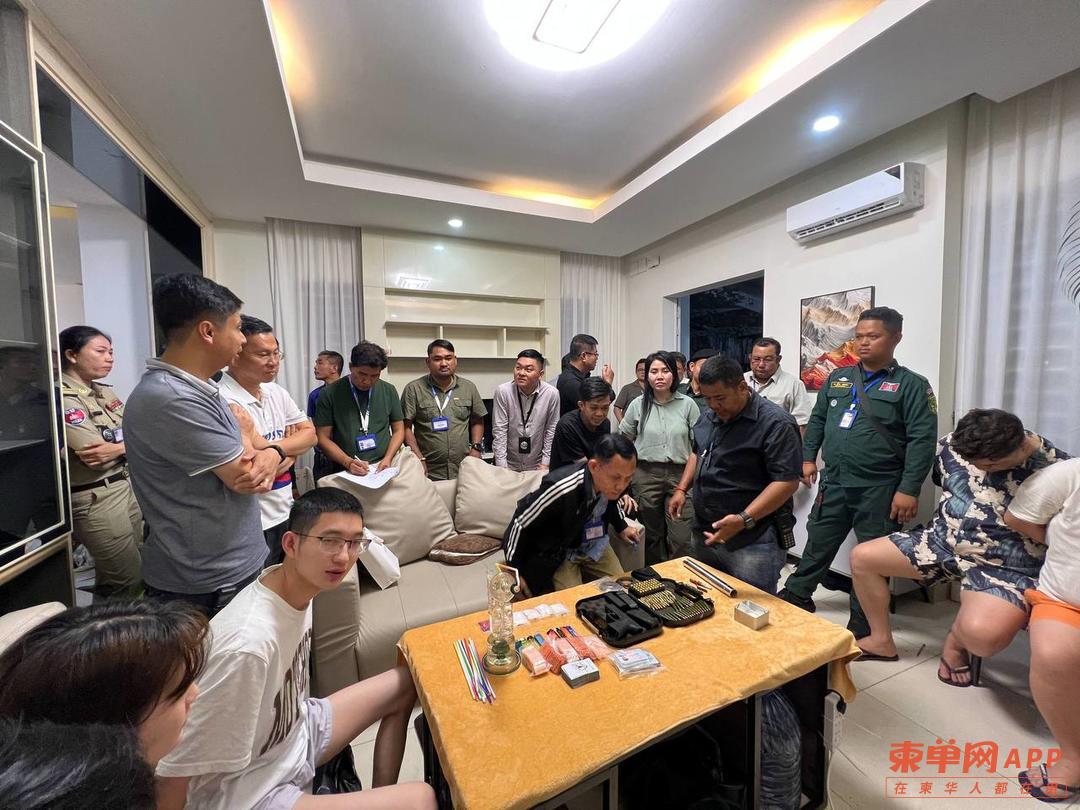 金边警方突击搜查水净华区外国人住所,现场查获毒品、枪支及吸毒用具