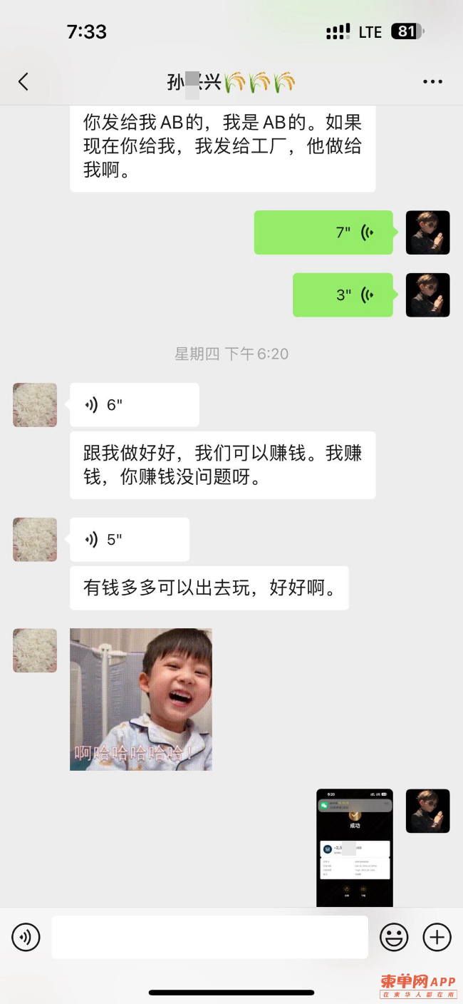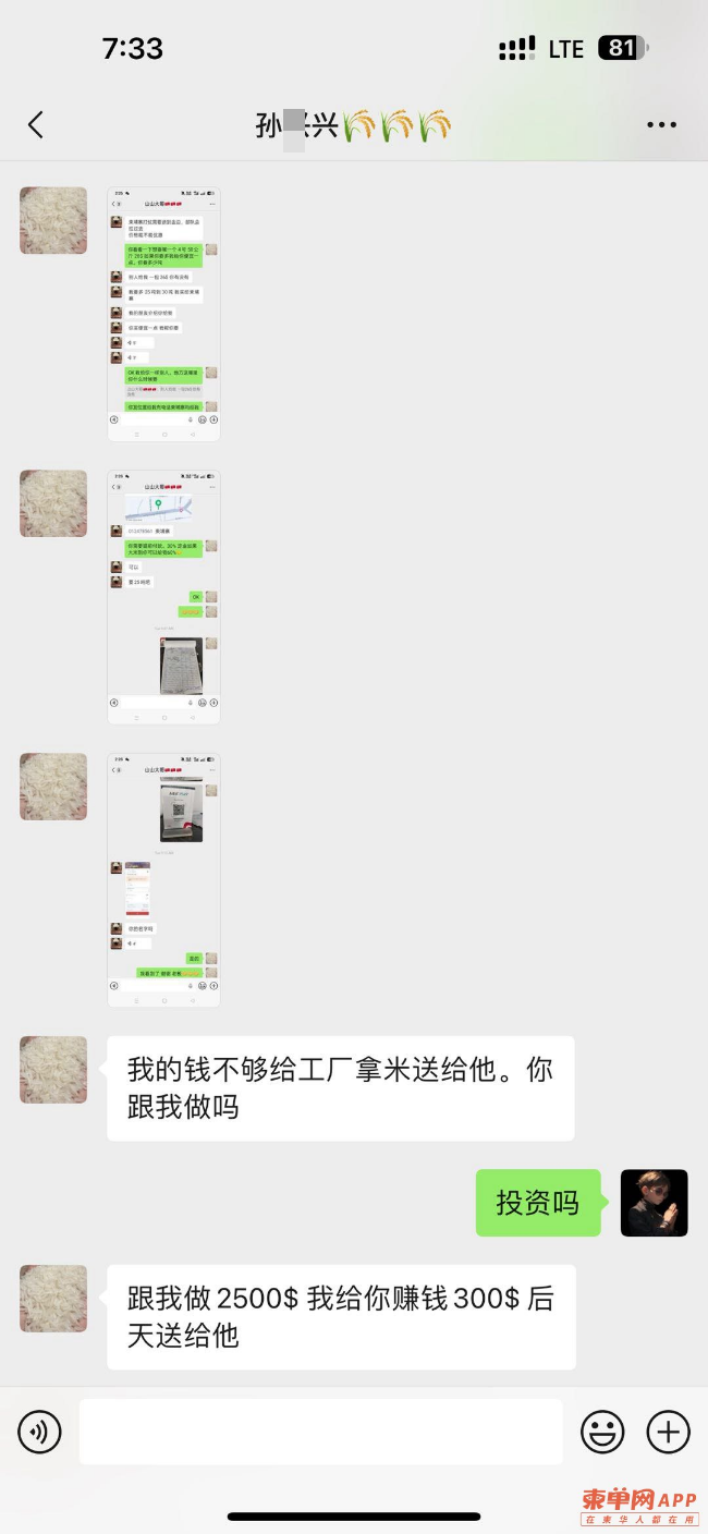 西港卖大米孙兴兴,于19号找到我,想跟我合作卖大米,出于对她朋友圈观察,本人前后给她转账3100$,她承诺21号下午返还本金和利润,截止到现在微信不回信息,部分社交账号拉黑我,不正确解决问题,柬埔寨就这么大,你的店在哪里很多人也知道,你还想不想做中国人大米生意,不要因小失大,积极联系我解决欠款。