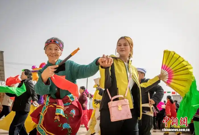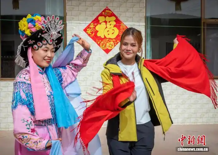 春节期间,山西柳林县大成垣村年味正浓。嫁到这里的柬埔寨媳妇尼小丽兴致勃勃学扭水船秧歌,在队员指导下,她认真模仿艄公的一招一式,有板有眼。异域面孔配上地道的黄土风情,一颦一笑间满是对山西民俗的新奇与热爱,碰撞出别样年味,生动诠释了文化交融与乡土温情。王凤云摄