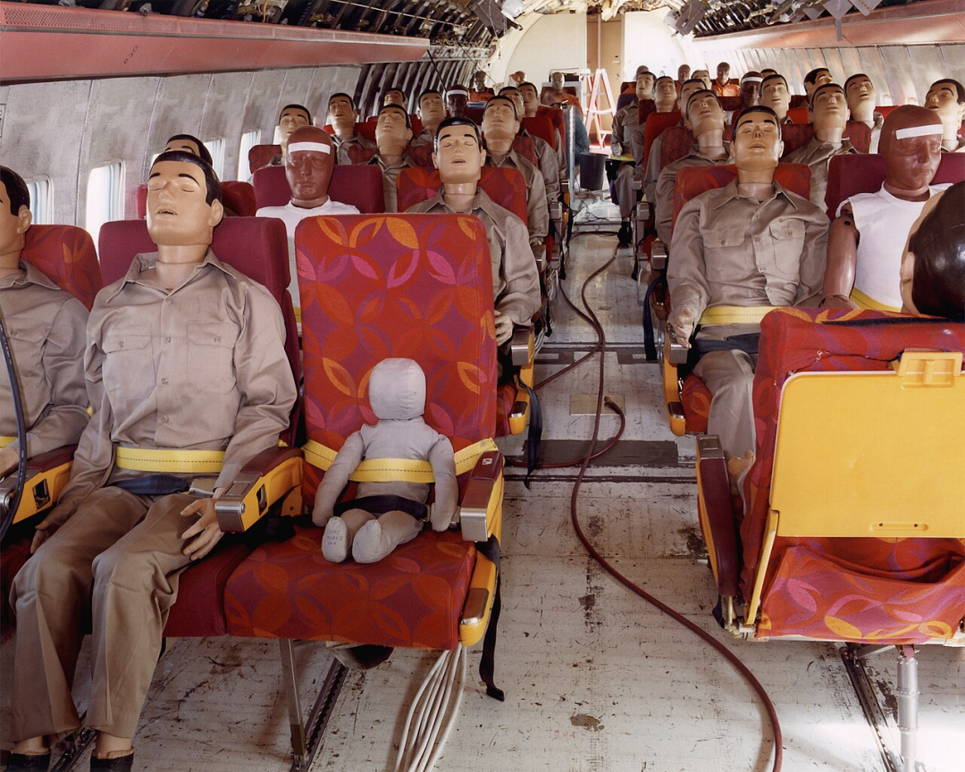 1984年,NASA与FAA联合进行的“受控冲击演示”(CID)实验中,波音720客舱内安置了由传感器高度集成的碰撞测试假人,用来收集真实坠机瞬间人体受力数据 / Wikimedia Commons