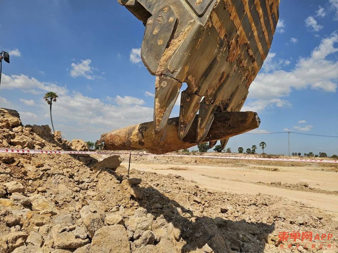 柬单网报道,金边市一处在建工地近日发现一枚重达约230公斤的未爆航空炸弹,现场一度引发紧张。施工机械操作员在作业过程中发现异常物体后迅速撤离,相关部门随即介入处置。