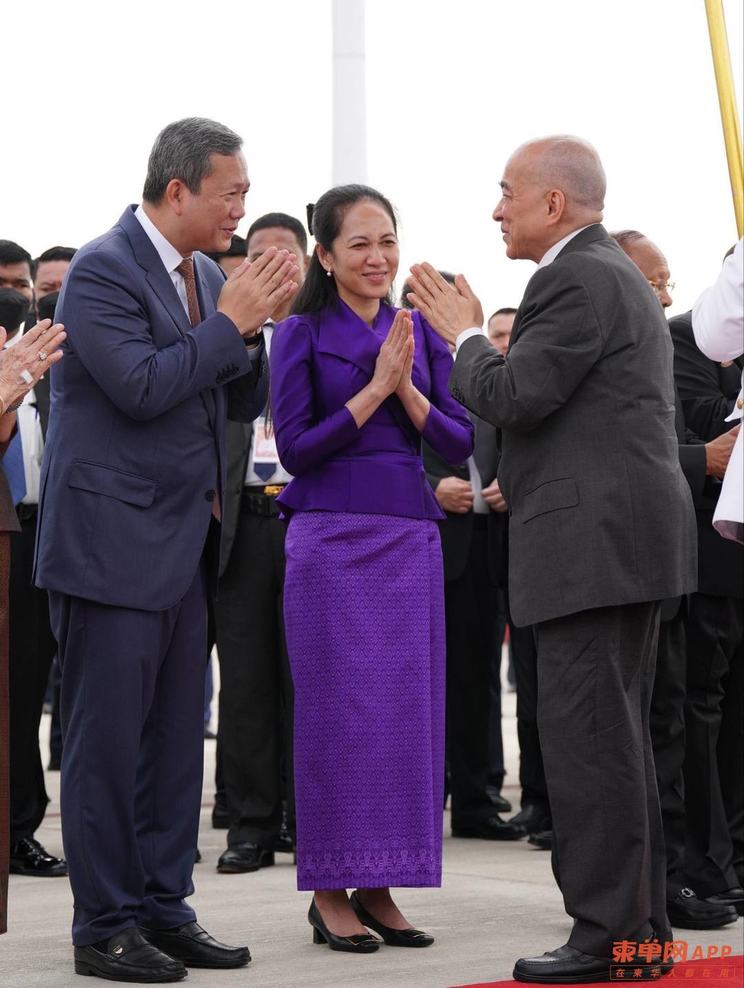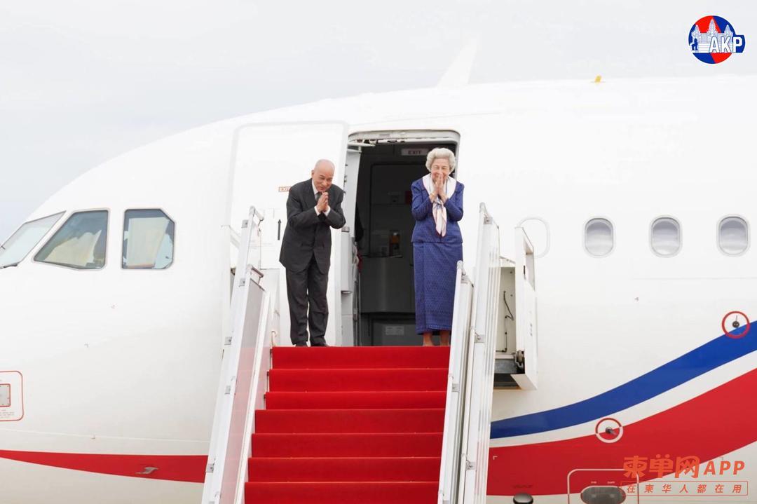 西哈莫尼国王和莫尼列国母启程前往中国北京