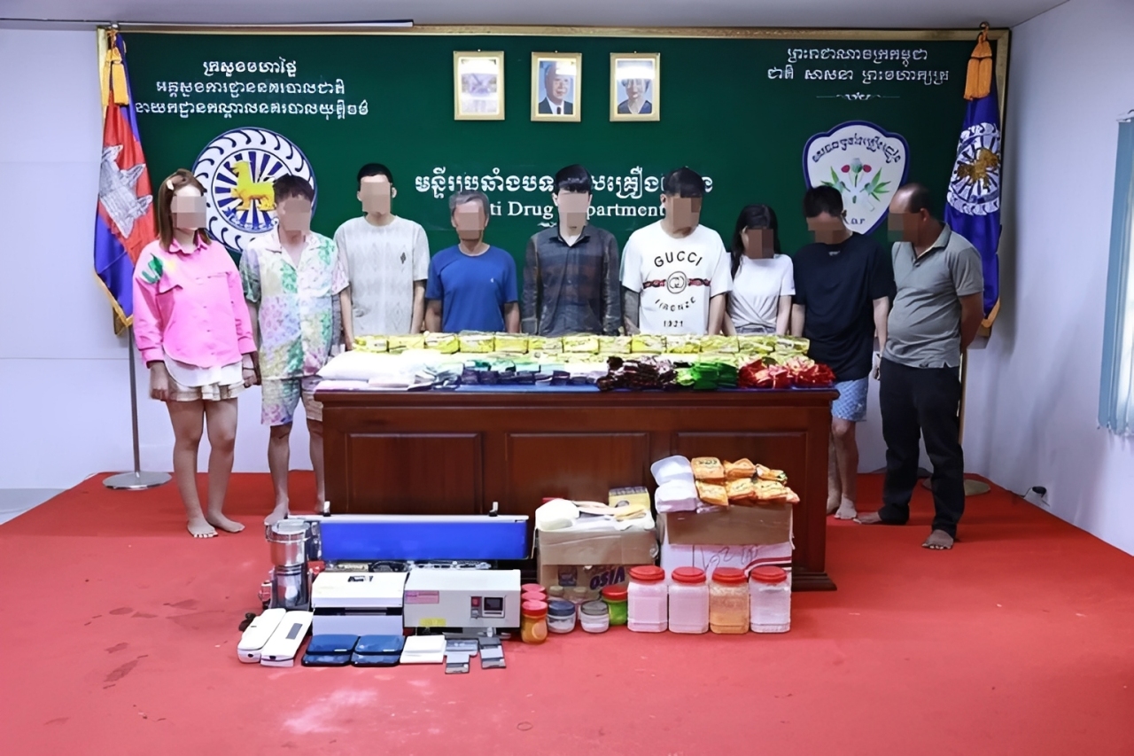 据了解,该犯罪团伙于2024年6月15日在西港市被柬埔寨禁毒警方成功抓获。当时执法人员查获超过50公斤纯毒品及大量毒品前体原料,并缴获两把枪支以及一批用于生产毒品的设备。涉案人员包括中国、越南及柬埔寨籍人员。