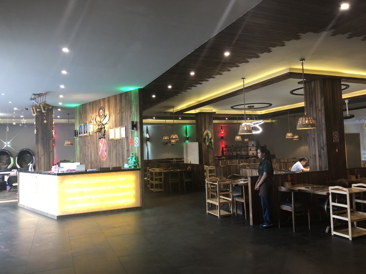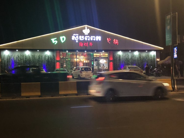 「5D绝对牛火锅」金边第一家火锅店既好吃又能玩的5DVR游戏、各大商场玩一次需要7$、只要到5D绝对牛火锅消费即可无限量的畅玩、5DVR深受孩子、年轻人喜爱、本店的电磁炉在金边也是创新的可以升降、避免吃的过程找不着肉、而且食材不会烫的过程影响口感、还避免了卫生问题不用拿筷子去捞、本店停车位还很方便,各位老板不用担心出去吃饭找不着车位、来5D绝对牛吃火锅可以让老板们吃的放心,玩的开心、[呲牙]本店装修环境舒适,时尚简约、深受年轻人的喜爱,[勾引]「5D绝对牛火锅」是朋友聚会,公司聚餐,生日宴会的好去处、欢迎大家前来品尝、谢谢!