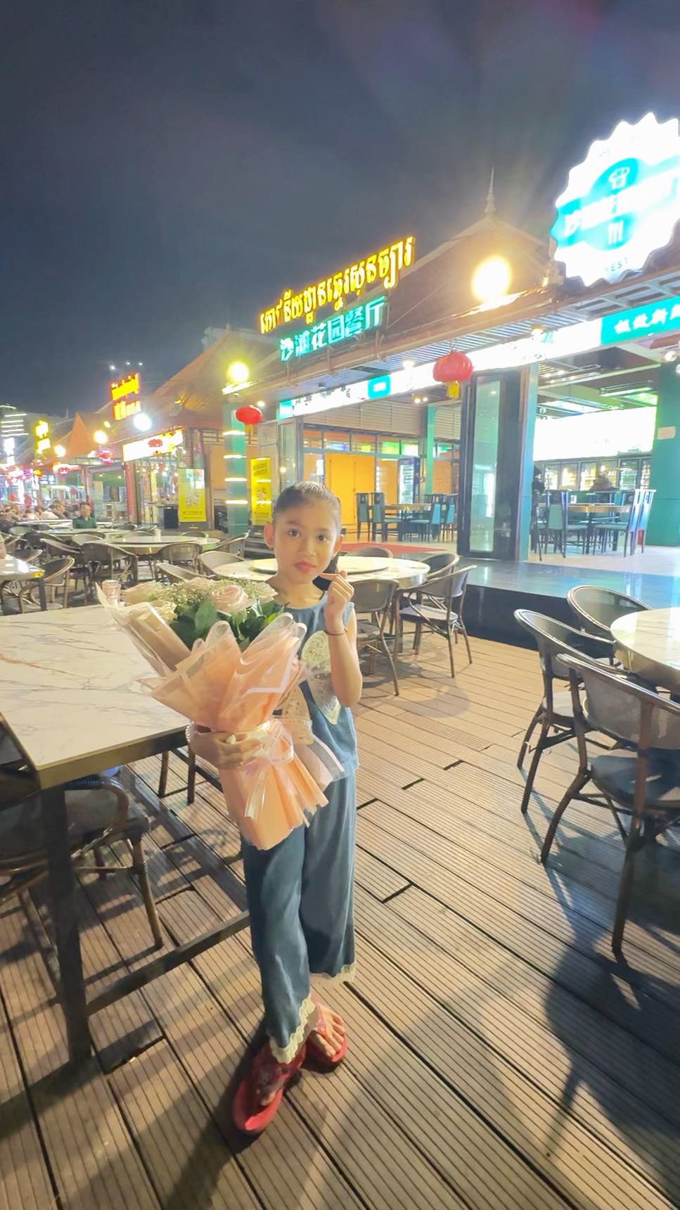 柬埔寨🇰🇭西哈努克市这位小姑娘仅仅八岁,名字叫玛雅,每天晚上都会来到海滩这里卖鲜花,帮助父母赚钱,真的是非常懂事的一个孩子,都说穷人家的孩子早当家,为她点赞,也祝福她越来越好!This eight-year-old girl named Maya from Sihanoukville, Cambodia, comes to the beach every evening to sell flowers and help her parents earn money. She's really a very sensible child. Thumbs up for her, and best wishes for her all the best! ក្មេងស្រីអាយុប្រាំបីឆ្នាំម្នាក់នេះ មានឈ្មោះ Maya មកពីក្រុងព្រះសីហនុ ប្រទេសកម្ពុជា មកឆ្នេររៀងរាល់ល្ងាច ដើម្បីលក់ផ្កា និងជួយឪពុកម្តាយរកប្រាក់។ នាងពិតជាកូនដែលមានប្រាជ្ញាខ្លាំងណាស់។ លើកមេដៃដល់នាង ហើយសូមជូនពរឱ្យនាងជួបតែសំណាងល្អ!